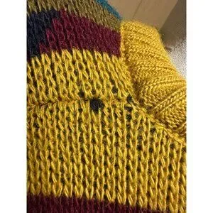 Very Good Pre-owned vintage condition. Knit is vibrant with only light natural pilling from age and wear. No holes, stains, or major flaws. Please see close-up photos for knit detail at shoulder seam where some stitches are blue instead of yellow.