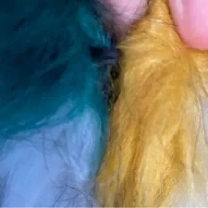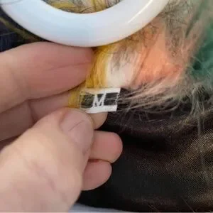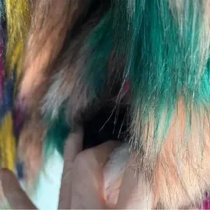 Excellent worn condition, Faux Fur Rainbow Coat, size M. Has side pockets and three front hooks for closure. No rips or stains.