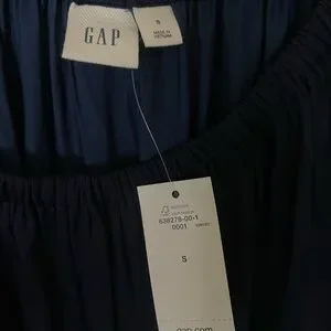NWT GAP Navy Blue Ruched Tie Front Sundress with Bishop Sleeves Size Small