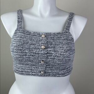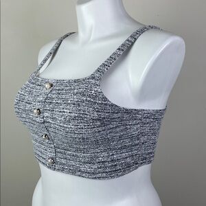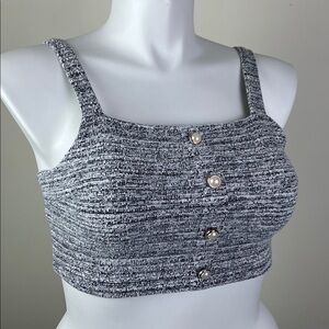 Almost Famous Big Pearl Button Stretch Crop Tank Tweed Smocked