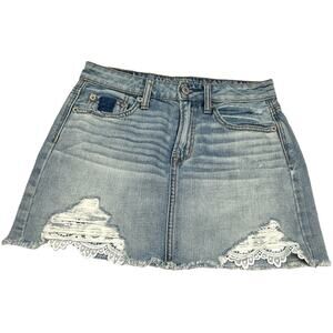 American Eagle Jean Skirt Hi-Rise Festival Mini Light Wash Denim Lace Women's 0