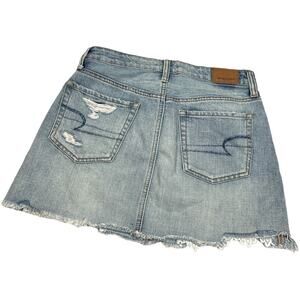 American Eagle Outfitters light wash blue denim Hi-Rise Festival mini skirt. Women's size 0