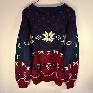 John Ashford Sport Hand Knits Men's L Wool Fair Isle Snowflake Sweater