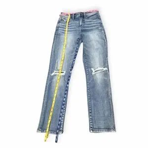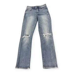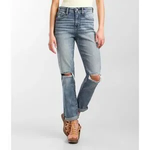 BUCKLE BLACK Women’s Light Wash Distressed Knee Mom Jeans Size 25