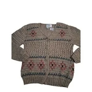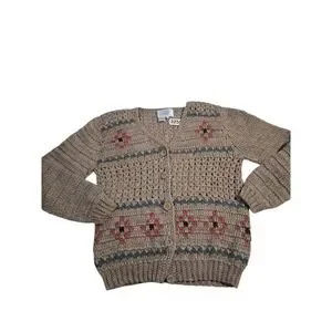 Vintage Lord & Taylor Wool Womens size L Grandpa Fisherman Grannycore Cardigan Sweater Crochet Open knit Aztec Southwestern Chunky Lightweight Grungecore Western Prep Cozycore