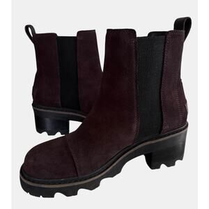 Sorel Joan Now Chelsea Boots 8.5 Brown Suede Lug Sole Platform Ankle Boot