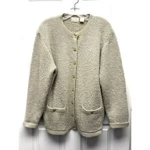 Kerri & Kelsey Sweater Vintage Boucle Cardigan Taupe Beige Crest Buttons Size L