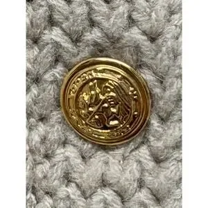 • Gold-tone crest / coin buttons