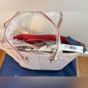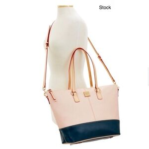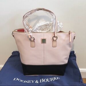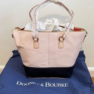 NWT Dooney & Bourke Large Becky Tote. Iconic Dooney style. Beautiful Wexford Leather in Blush/Navy - Imo, the blush color looks like new Vachetta on Louis bags!