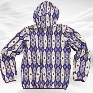 Stretchy elastic trim at waist wrist and hood. Still stretchy.