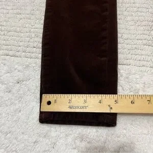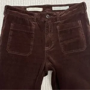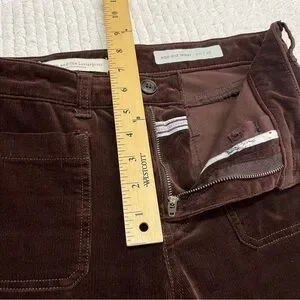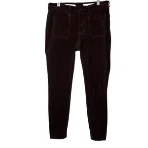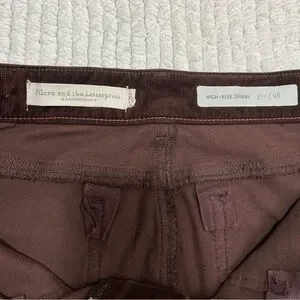 Anthropologie high-rise skinny corduroy pants. Deep brown color with front patch pockets. Soft textured fabric and button closure. Sleek fitted silhouette.