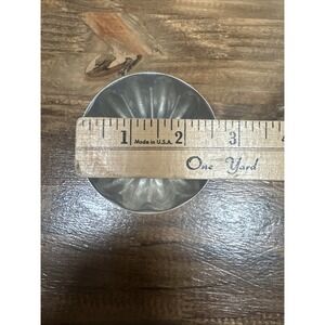 Vintage Set of 5 Fluted Aluminum Dessert Gelatin Molds Cottage Chic Kitchen Deco in good pre-owned condition. This vintage set of 5 fluted aluminum dessert gelatin molds is perfect for adding a touch of cottage chic charm to your kitchen decor. The round, small size molds are ideal for creating beautiful desserts with a retro flair. Made in the United States in the 1950s, these original molds are a unique collectible for any adult interested in baking and food-themed items. The silver color and vintage style make them a standout piece for any occasion.