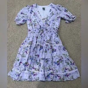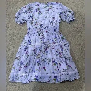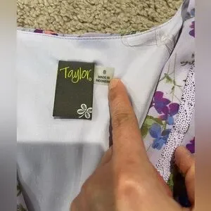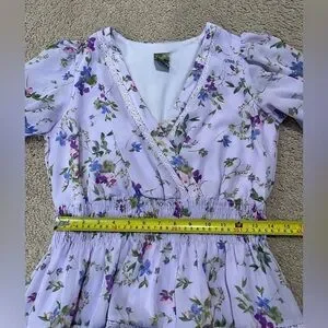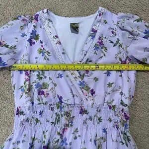 TAYLOR Baby Doll Boho Puff Sleeves Lavender Floral Midi Dress, size 8, 100% polyester material, with inner linings, stretchable waistline, V-neck, bell puff sleeves style, knee-lenght, pull-on, made in Indonesia. So pretty in actual. Never worn. New without Tag