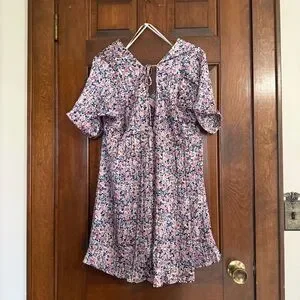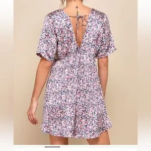 Shout your love of the warm weather from the rooftops in the Lulus Express Yourself Blush Pink Floral Print Satin Babydoll Dress! Lightly textured satin, in a feminine blush pink, purple, and blue floral print, falls from a V-neck and back (with tying detail at back) into short dolman sleeves with drop shoulders and folded cuffs. Seamed, wide-cut bodice tops an empire waist and flared mini skirt creating an on-trend babydoll silhouette.