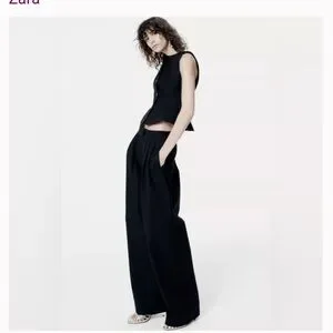 Zara ZW COLLECTION Women's Black Wide-Leg Pants