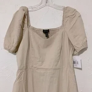 Ellen Tracy Sweetheart Neckline Balloon Sleeve Flounce Linen Midi Dress Sz Large