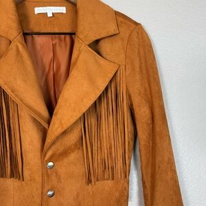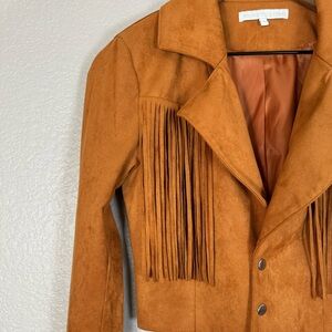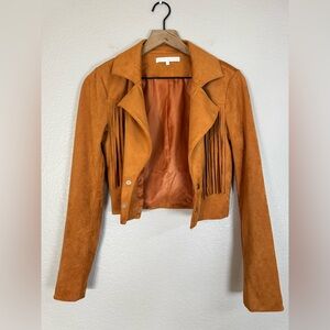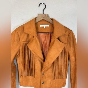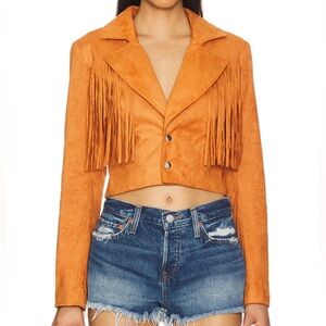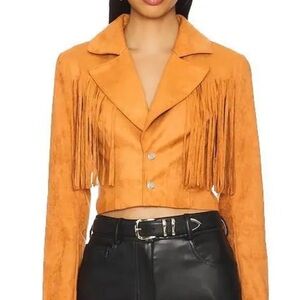 Revolve More To Come Kiara Suede Fringe Jacket in Camel size Small $108