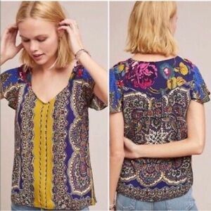 ANTHROPOLOGIE MOULINETTE SOEURS Women Sz 12 Paisley Teresita Printed Top Blouse