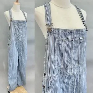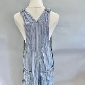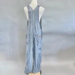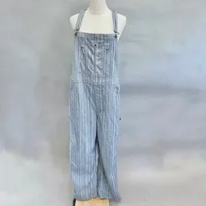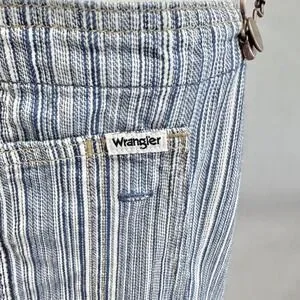 Wrangler Striped Straight Leg Overalls Blue White Classic Workwear Style Medium