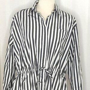 Pistola Layla Cinched Waist Dress Alani Striped XS oversized Rekaxed Gray Cotto