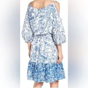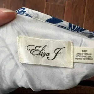Eliza J Blue and White Floral Petite Dress