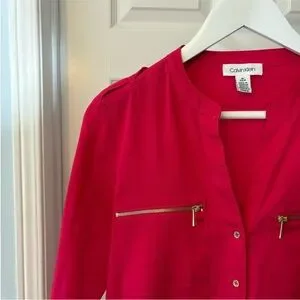 Calvin Klein Fuchsia Pink Gold Button Down Blouse Size Small