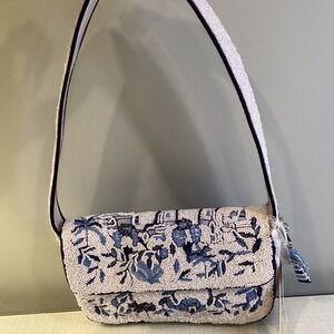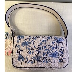 Tik Tok Viral Beaded Bag Purse TJ Maxx - Blue White Palm Trees + Charm NWT