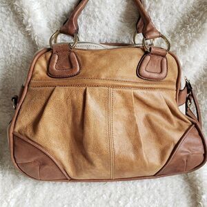 Beautiful soft studded large leather Satchel. Some light scuffs and signs of wear noted from normal use please see all pictures! Inside zipper pull has come undone but is included and will be an easy fix!