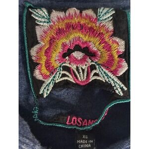 Keywords: Los Angeles Apparel, hoodie, embroidered, sun graphic, floral print, bohemian, festival wear, casual, zip up, lightweight, womenswear, trendy