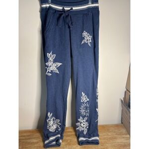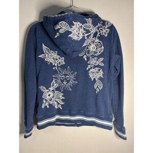 Johnny Was Hoodie & Jogger set Womens Blue Sun Floral Embroidery Full Zip XS