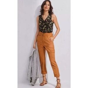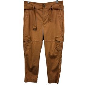 CABI Paper Bag Cargo Pants Burnt Orange Belted Straight Leg