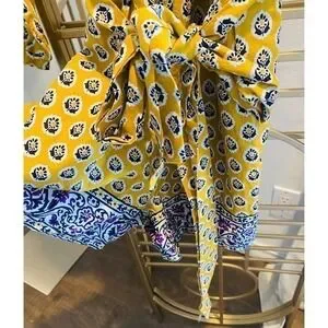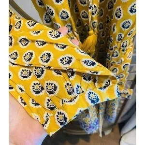 Get ready to turn heads with this stunning J.Crew Point Sur Paisley Romper in a beautiful mustard yellow color. Made from 100% cotton with a lightweight and breathable knit fabric type, this romper is perfect for a casual occasion during the summer season. The V-neckline and long sleeves add a touch of elegance, while the tasseled accents give off a bohemian vibe.