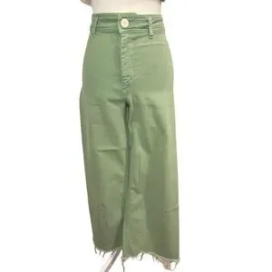Design: Trendy green wide-leg fit with classic denim construction and raw or clean hem styling.