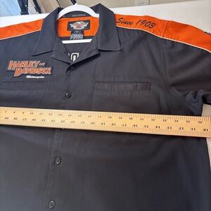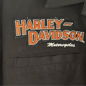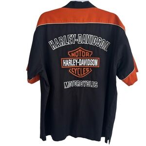 Vintage HARLEY DAVIDSON Orange Black Mechanic Shop Garage Button Up Shirt