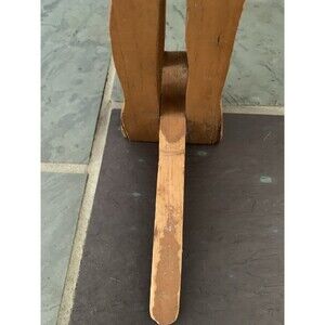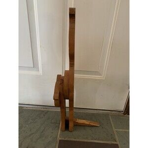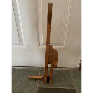 This product is a handmade wooden doorstop in the shape of a cat. It features a country decor style and is considered folk art or primitive. The doorstop is large and vintage in appearance.