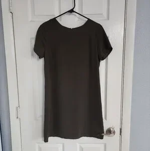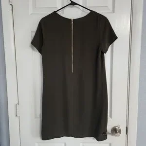 Army green chiffon dress with gold zipper detail on back. Like new condition!