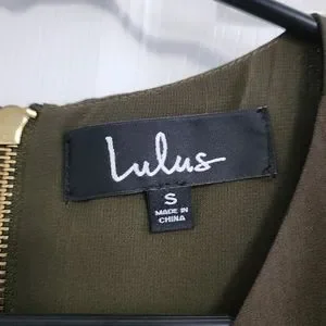 Lulu's Army Green Chiffon Dress with Gold Zipper S
