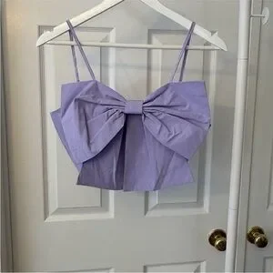 Trendy purple crop top with a statement bow. Ideal for a chic look.