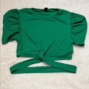ADD ON ITEM 💕SHEIN Emerald Green Puff Sleeve Crop Top
