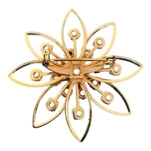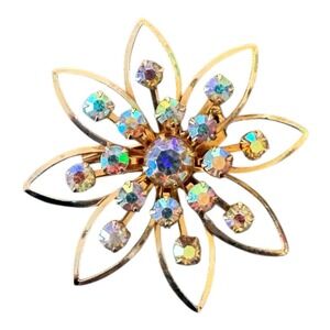 Vintage Atomic Flower Star Brooch AB Prong Set Rhinestones Gold Tone Floral Pin