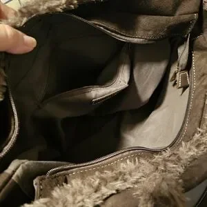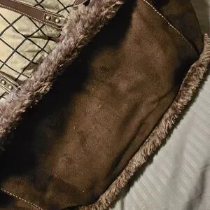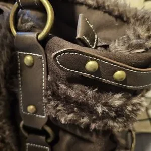 Dollskill. Stylish brown tote featuring soft faux fur trim and buckled strap accents. Spacious and versatile for everyday use. Durable hardware and reinforced handles for comfortable carrying. Never used.