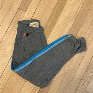 Aviator Nation Gray Track Joggers & Zip Hoodie with Blue Stripe Accents