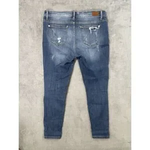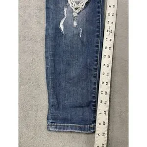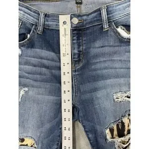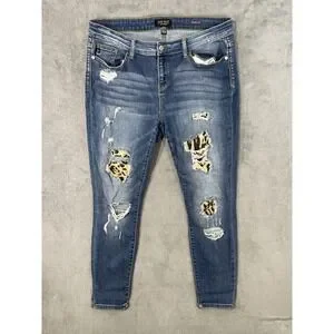 Judy Blue Jeans Womens 15/32 Blue Medium Wash Skinny Mid Rise Leopard Patches