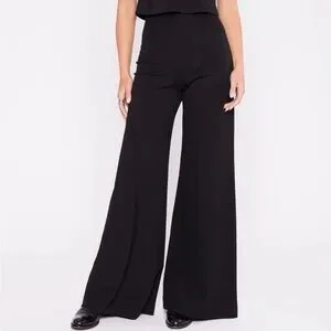 Timeless black wide-leg pants with a high-waist silhouette. Designed for a polished, elongating fit that moves with you. Versatile black color pairs easily with casual or dressy tops. Comfortable stretch fabric for all-day wear.