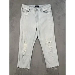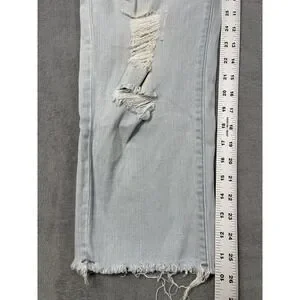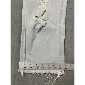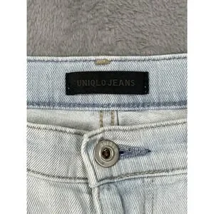 Uniqlo Jeans Womens 27 Blue Light Wash High Rise Straight Distressed Baggy