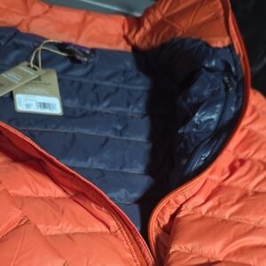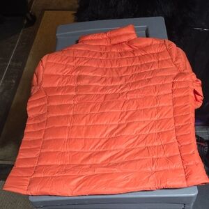 Vibrant orange Patagonia down sweater. Ideal for warmth and style.