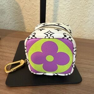 LOUIS VUITTON Monogram Giant Portemonnaie Cube Mini Cube Coin Bag Key Charm