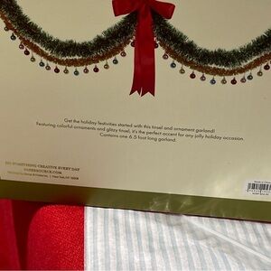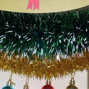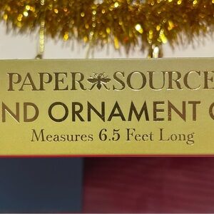 Add a touch of holiday cheer with the Paper Source Tinsel and Ornament Garland. Featuring vibrant green and gold tinsel, this garland is perfect for creating a festive atmosphere.