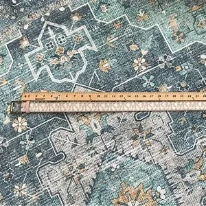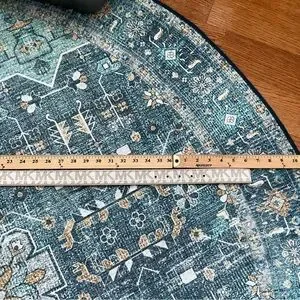 @florawindsor It’s off white/cream with pale pink edging best represented in pics 3 and 5. The measurement is 42” (see last 3 pics - but it is confusing).
