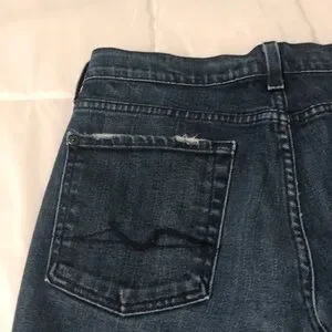 Dark denim jeans for everyday wear. It has some wear as shown in pics but still a lot of life left in them. Gently worn.